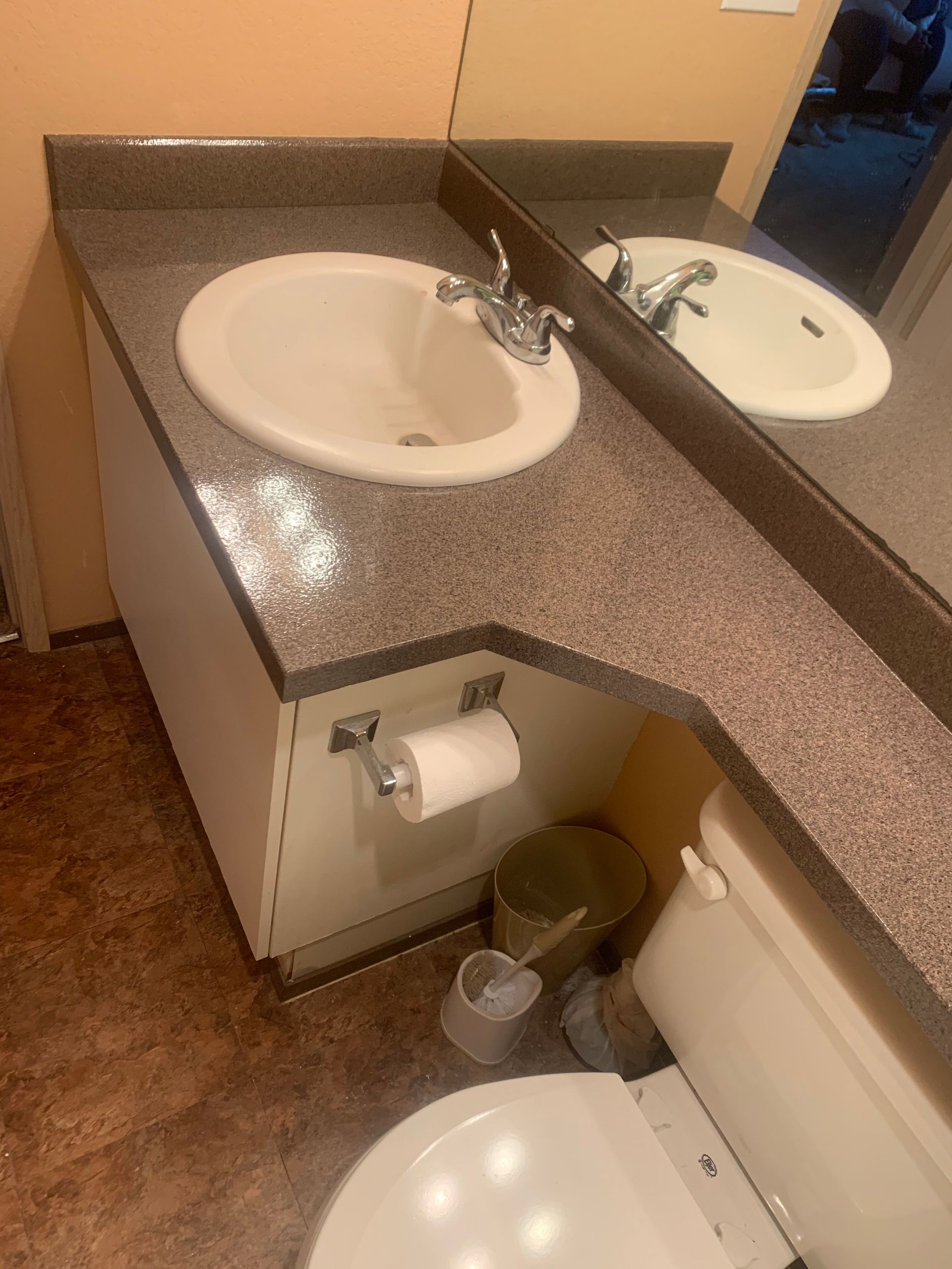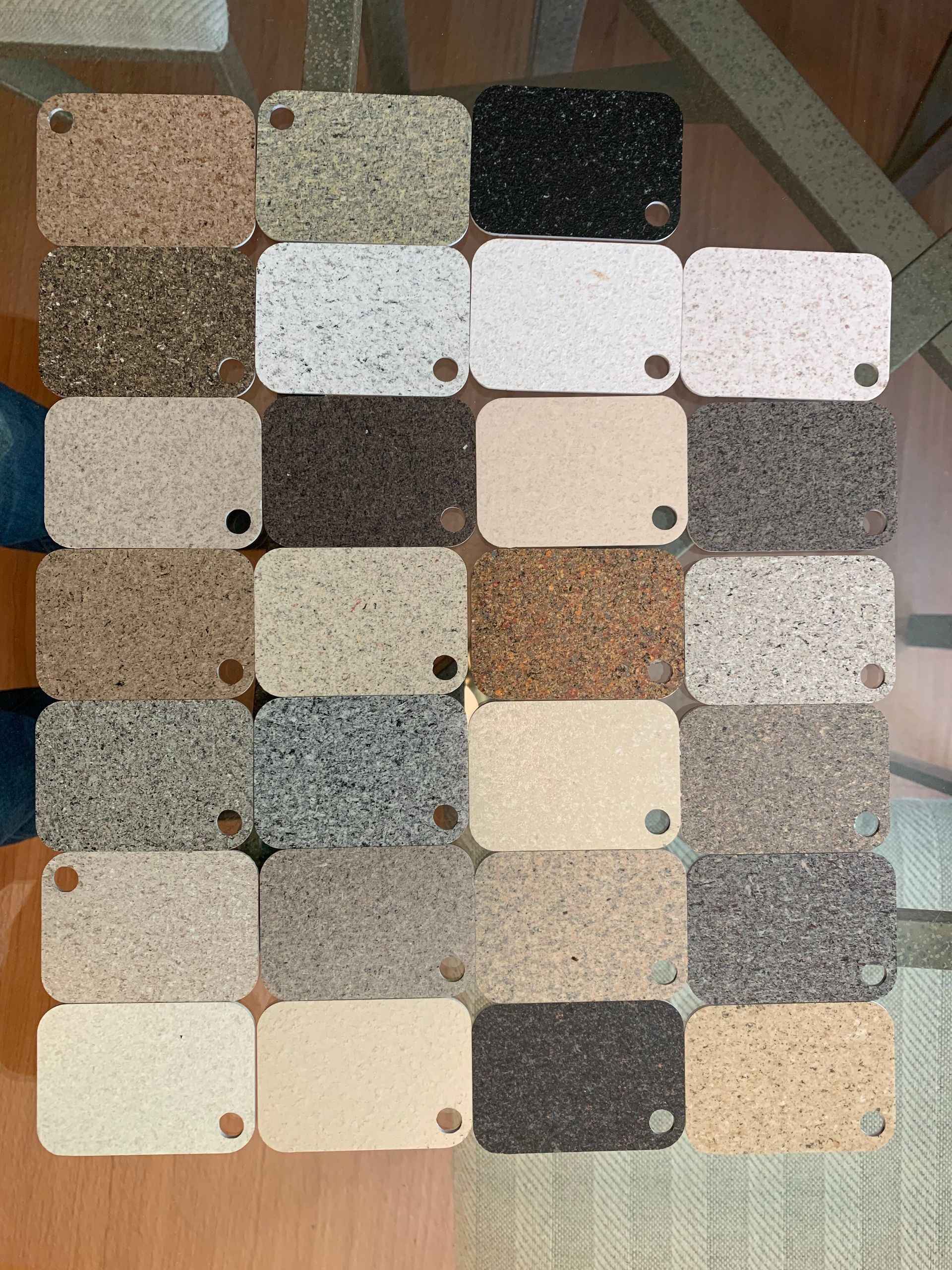 - Countertop Refinishing: We refinish kitchen and bathroom countertops in stunning stone finishes, offering a selection of 32 different colors to match your style and preferences.